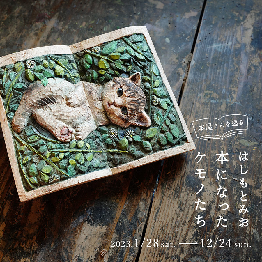 ケモノたちの木彫りのレリーフ本が、全国の素敵な本屋さんを巡回します。
