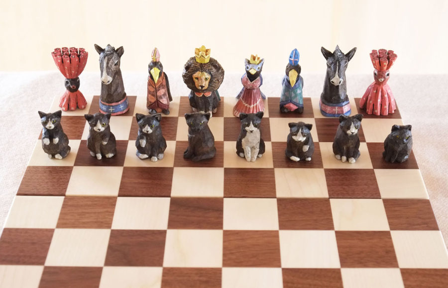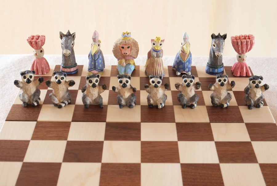駒一つ一つ手彫り、手彩色の木彫チェスセットが数量限定で展示販売。