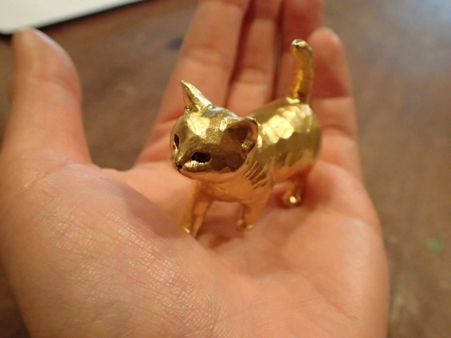純金なので小さいけど、すごく重くて、金という素材の持つ強さ、美しさに、新しい彫刻の世界を見つめるきっかけとなりました。
